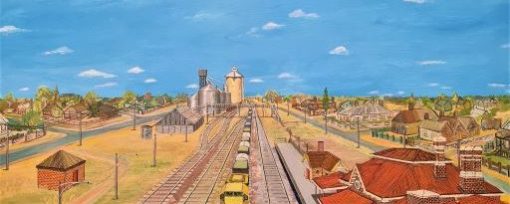 The exhibition draws on the era of Sidney Nolan and his time in the Wimmera from 1942-43, the same time Gallus’ Great Grandfather owned and ran the General Store in Dimboola. Gallus has used his paintings as a reference and starting point for her own interpretation and response to similar or even the exact same places.