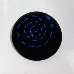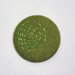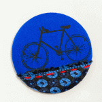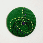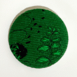 Tina uses recycled fabrics and hand stitching to create her one of a kind badges.