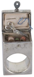 Image: Carol BOGLE, Ring (miniature sewing kit) 1980, silver, silk, wood, cotton, 3.6 x 2.3 x 1.5cm. 1980-4, Horsham Regional Art Gallery collection, purchased through the Horsham Art Gallery Trust Fund with the assistance of the Crafts Association of Victoria, 1980.
